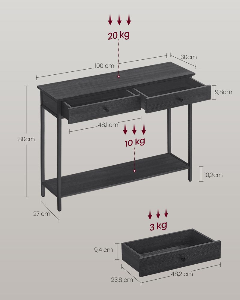Consoletafel met Lades – Industrieel Design – 100 cm Breed – Vintage Bruin en Zwart Staal