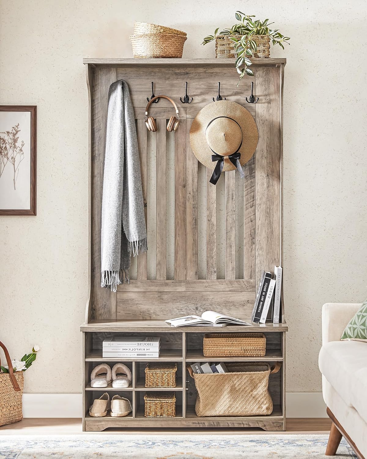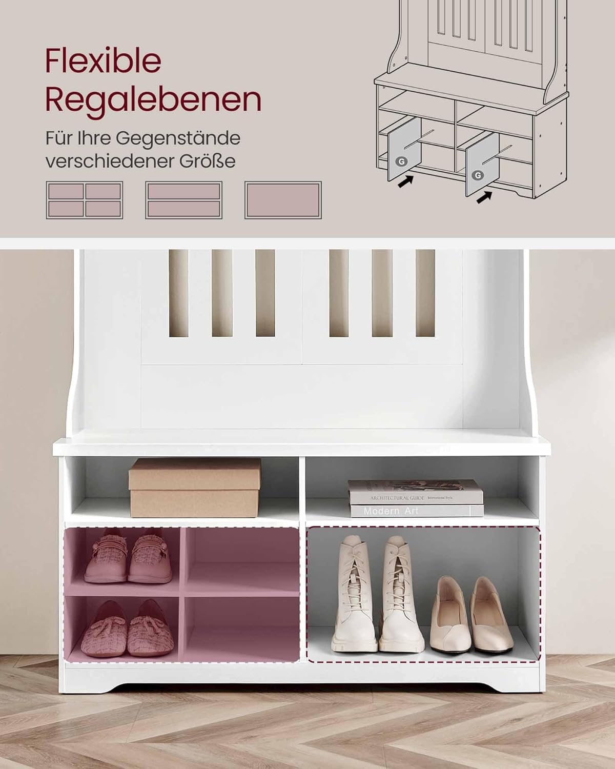 Kapstok Met Schoenenbank – Garderobe Met Zitbank En Verstelbare Planken – Met Haken – Ruimtebesparend Ontwerp