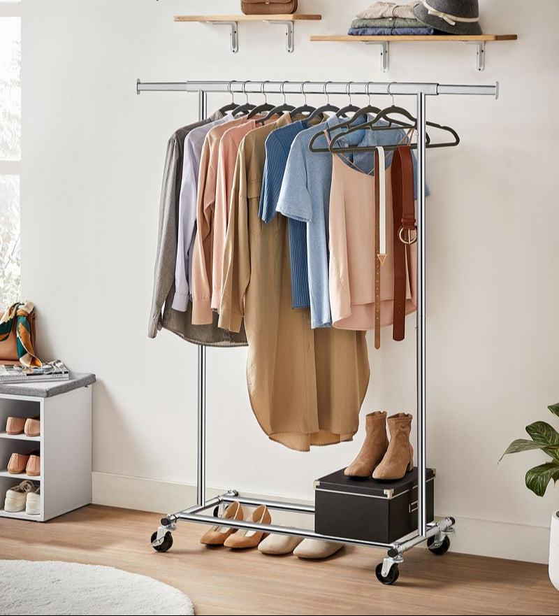Kledingrek op Wielen – Uitschuifbaar – Verchroomd Metaal – 90 kg Draagvermogen