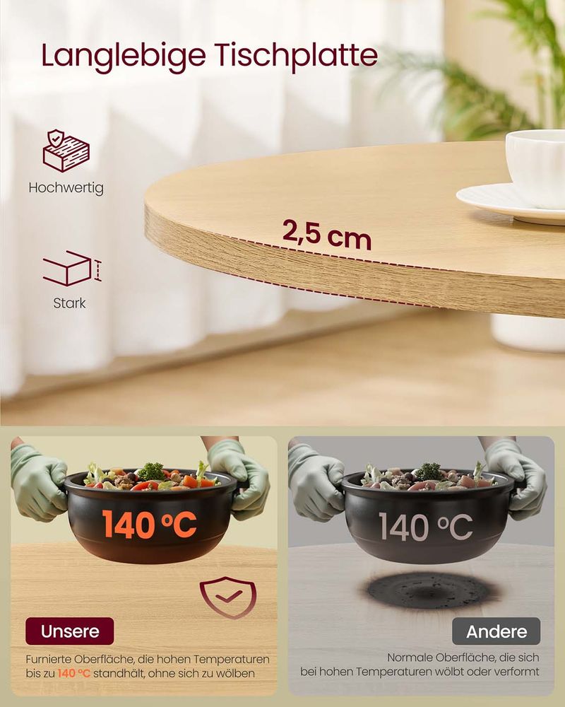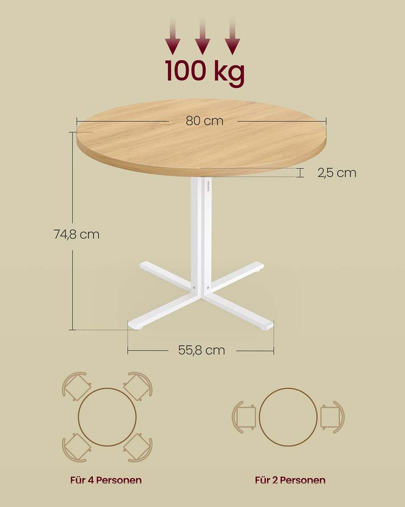 Ronde Eettafel Ø 80 cm – Moderne Landhuisstijl – Hittebestendig & Waterafstotend