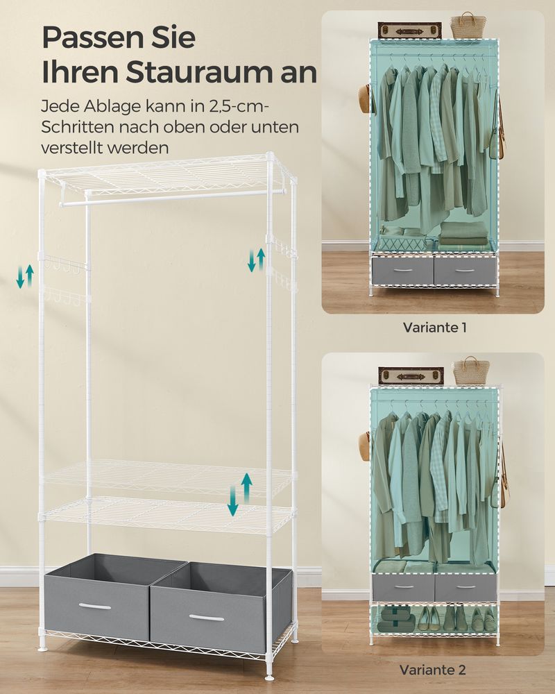 De Vries Meubels – Verstelbare Garderobestelling – Grote Capaciteit tot 300 kg – Stabiel