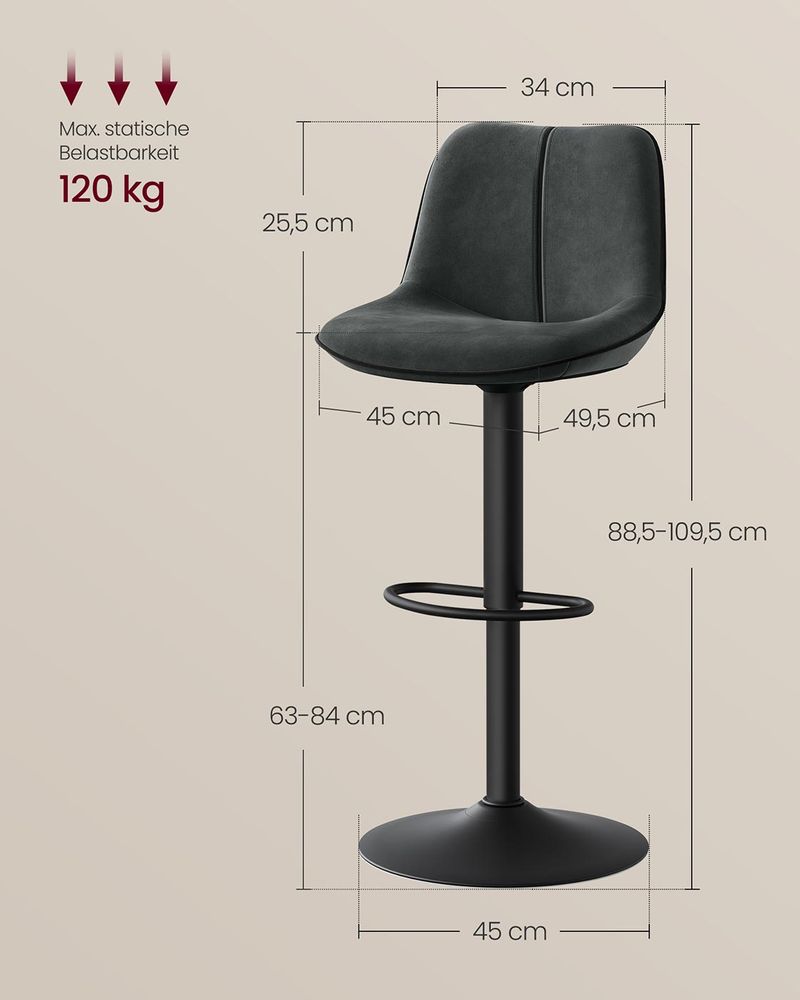Set van 2 Barkrukken – Verstelbare Zithoogte – Fluwelen Bekleding – Ergonomisch Comfort – Stabiele Voet