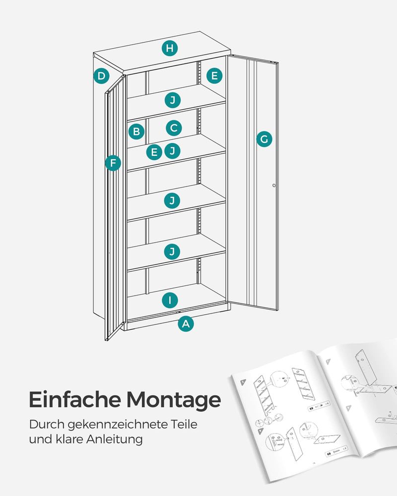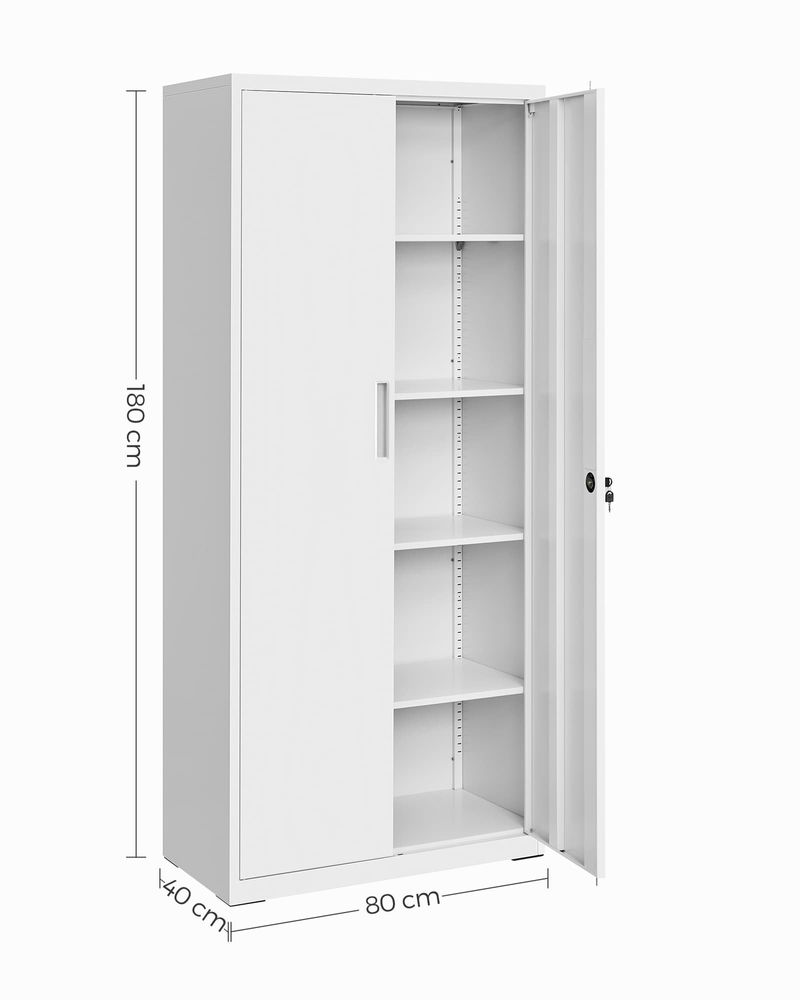 Metalen Archiefkast - 180 cm Hoog - Slot & Sleutels - Verstelbare Planken