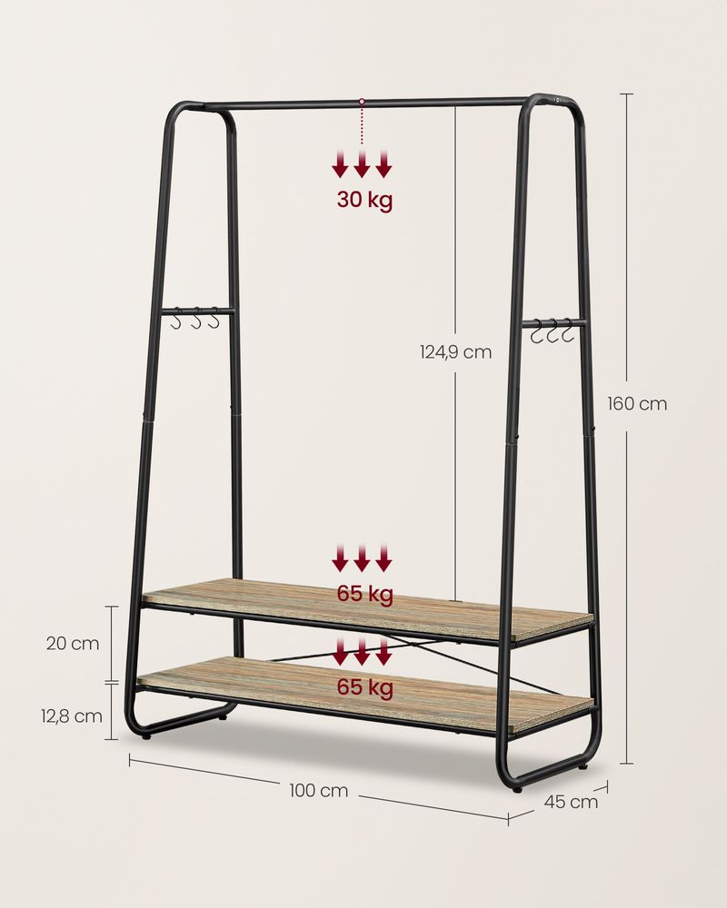 Kledingrek met Legplanken – Industrieel Design – Vrijstaand – 100 cm Breed