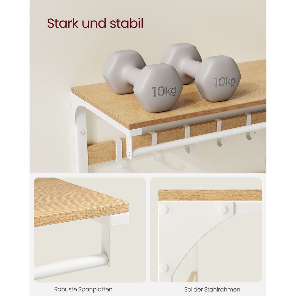 Wandkapstok – Industrieel Design – Met Legplank, Kledingstang en 10 Haken – Ruimtebesparend Wandrek