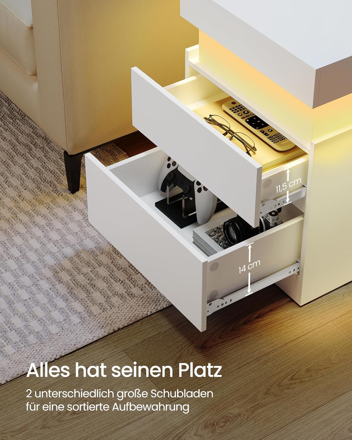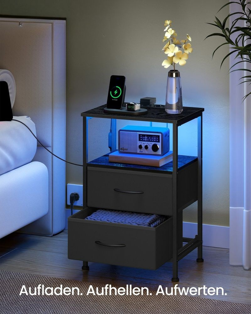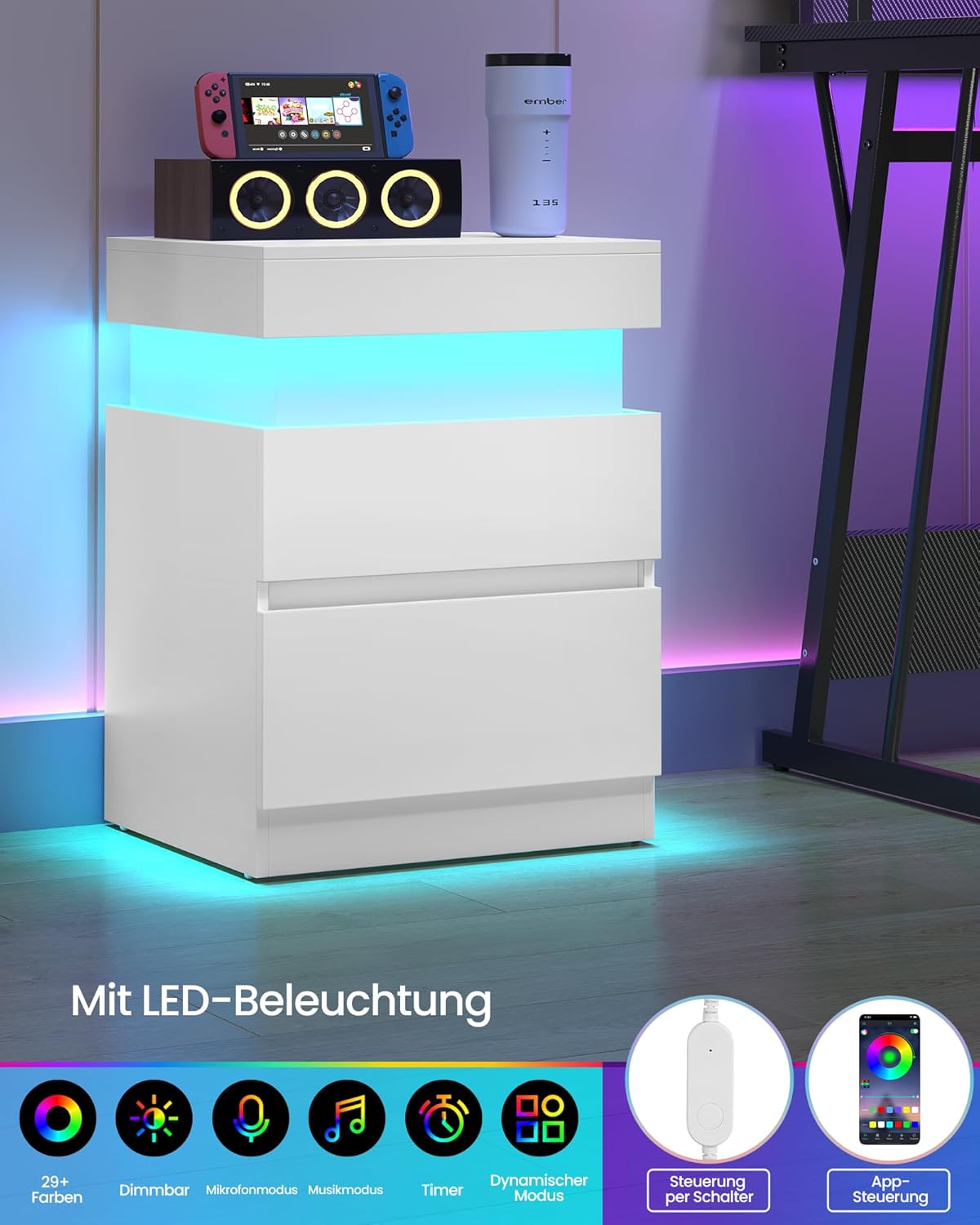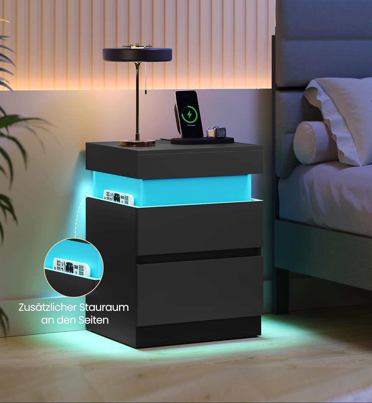 Nachtkastje – Met Oplaadstation – App-Gestuurde Verlichting – 2 Lades – Open Vak – Compact Formaat
