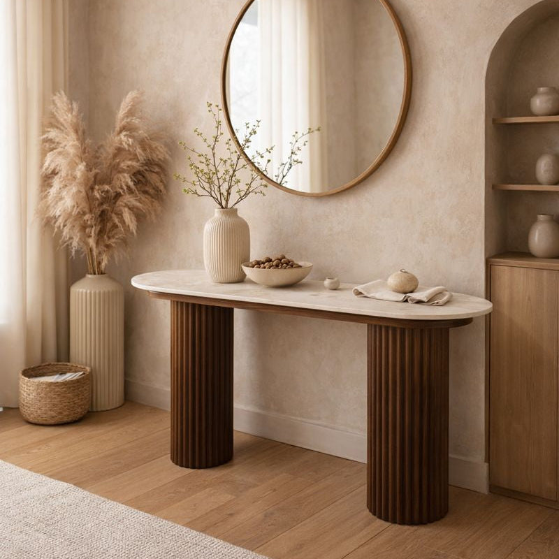 Urban Chique Bijzettafel – Keramisch Marmer / Walnootfineer – 130 x 40 x 72 cm – Modern Design – Natuurlijke ElegantIe