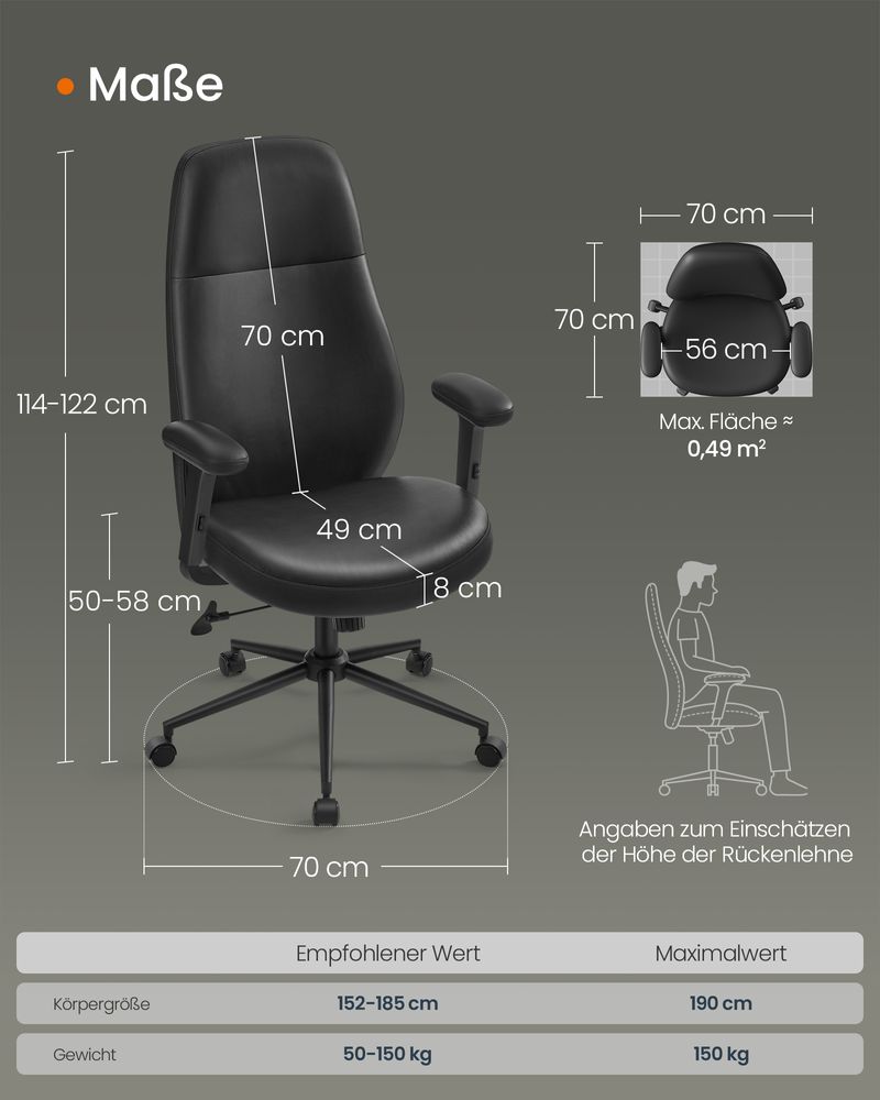 Ergonomische Bureaustoel Zwart – Verstelbaar – PU-Lederen Bekleding – Tot 150 kg Draagvermogen
