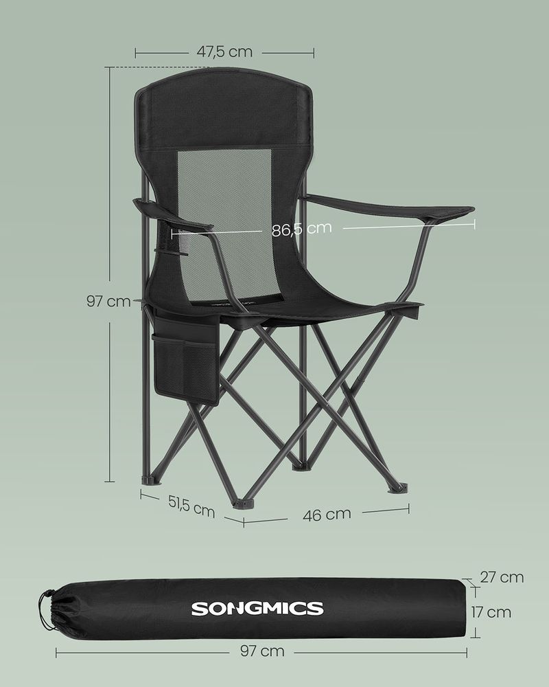 ✔ Hoge rug & brede zitting – Met een rughoogte van 54 cm en zitvlak van 52 x 52 cm geniet je van maximaal comfort tijdens je buitenavonturen.