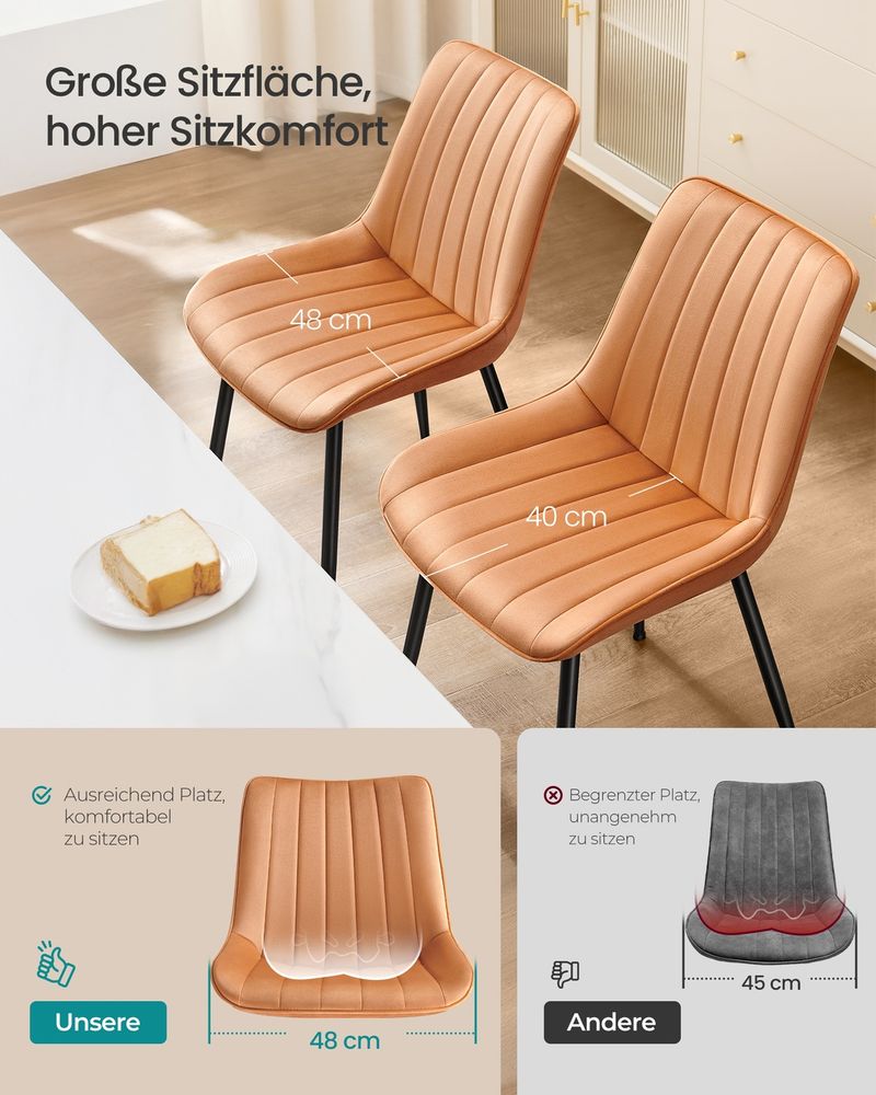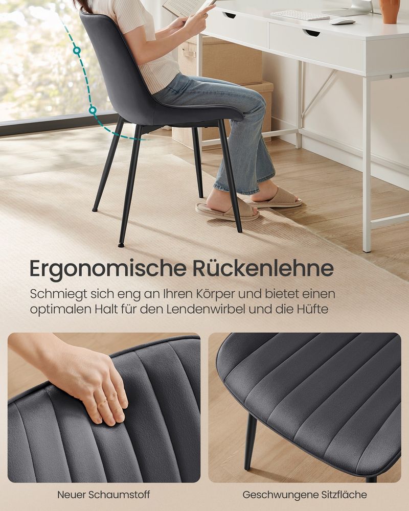 Set van 2 Eetkamerstoelen – Chenille Stof – Ergonomisch & Comfortabel – Metalen Poten – 56 x 50 x 81 cm