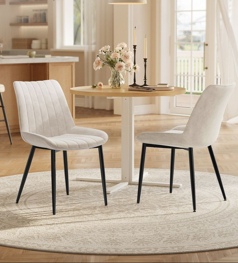 Moderne Eetkamerstoelen – Set van 2 – Gestoffeerd met Fleece – Ronde Zitting met Rugleuning