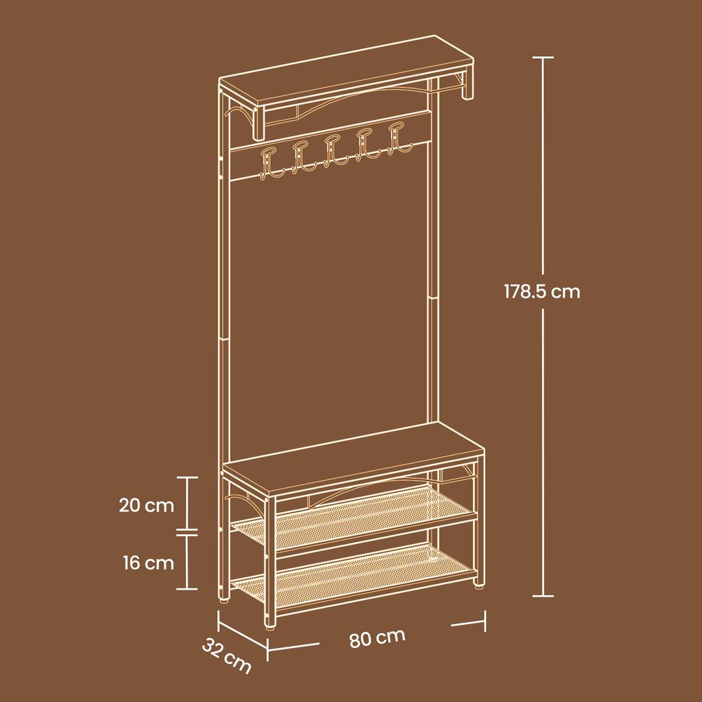 Kapstok met Bank – 3-in-1 Garderoberek – Opbergrekken & Haken – 32,2 x 64 x 180 cm