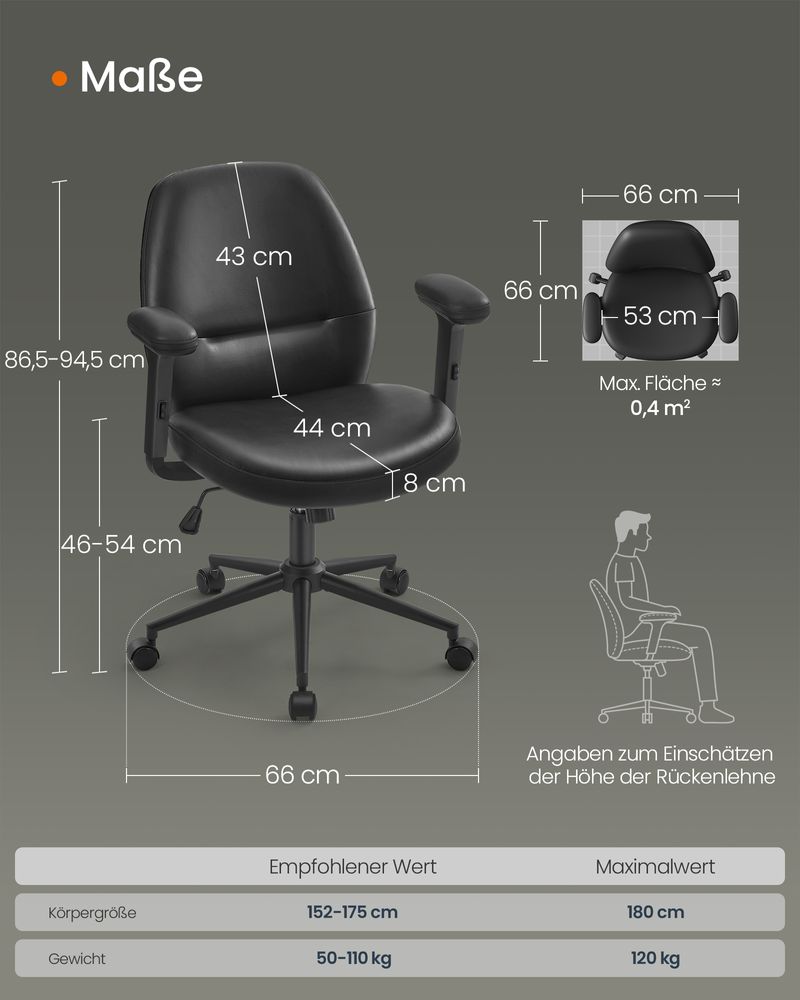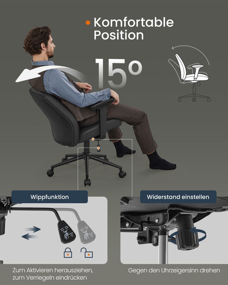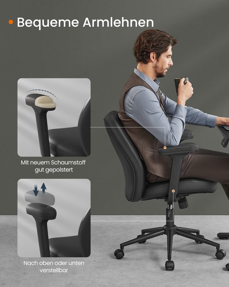 Ergonomische Bureaustoel Zwart – Verstelbaar – PU-Lederen Bekleding – Tot 150 kg Draagvermogen