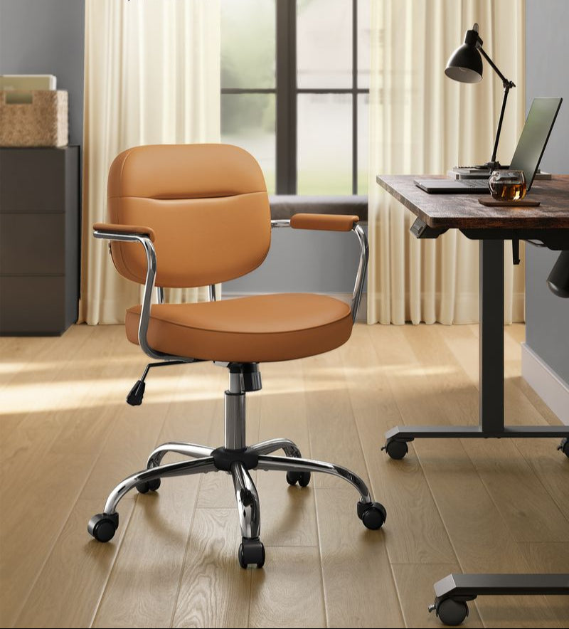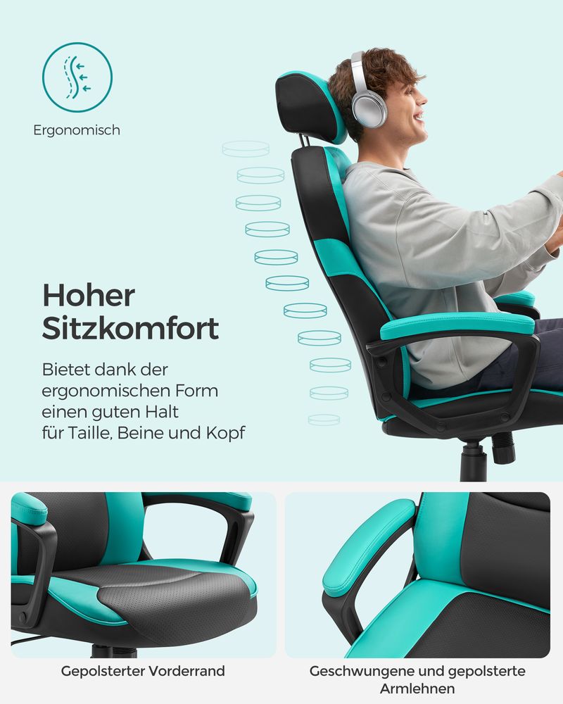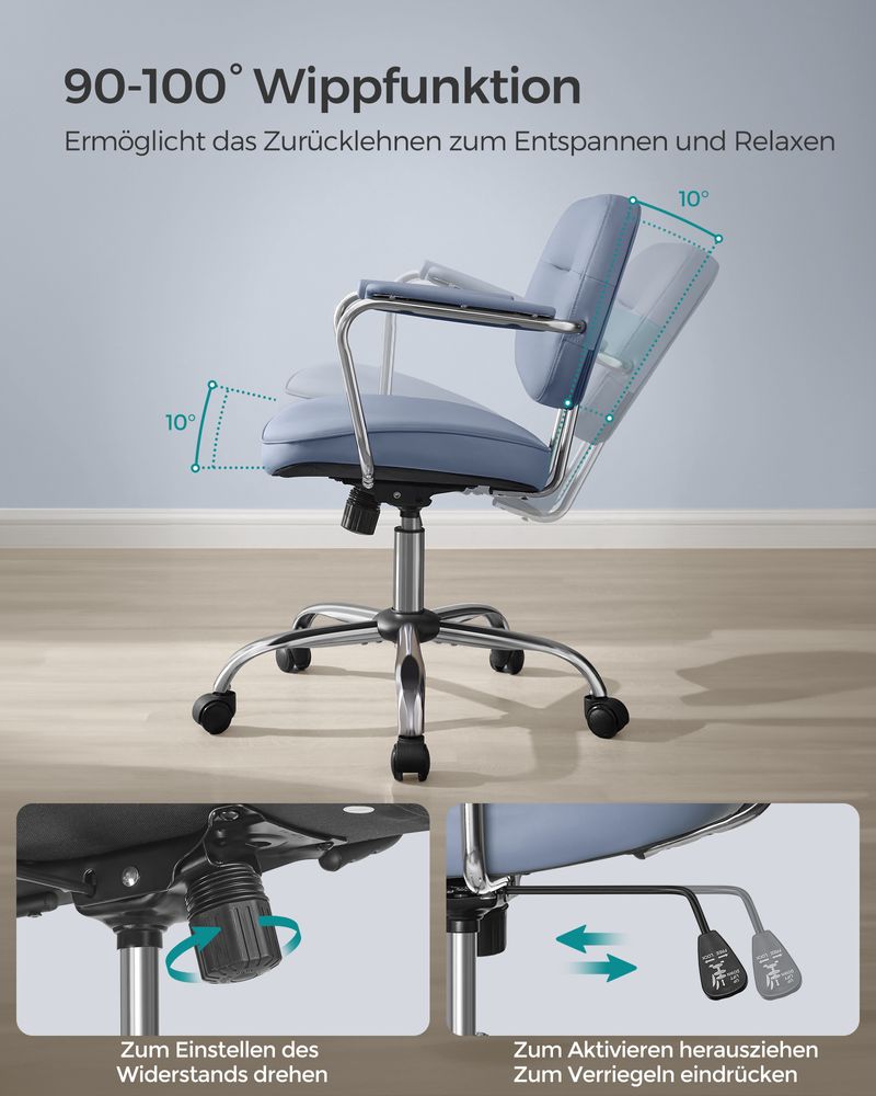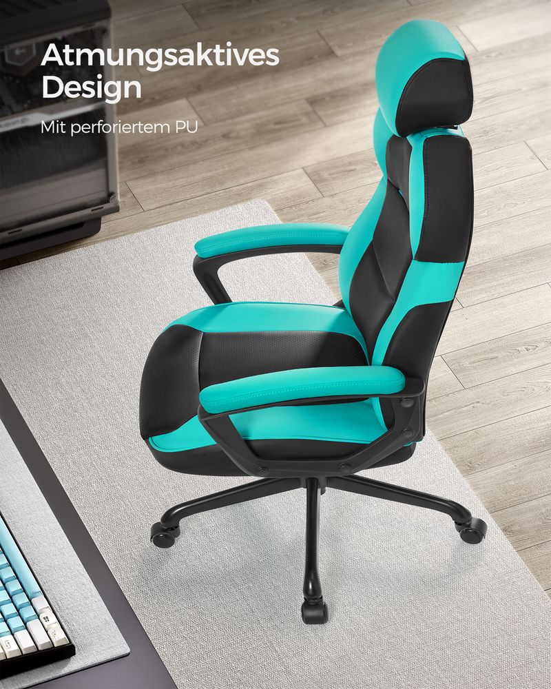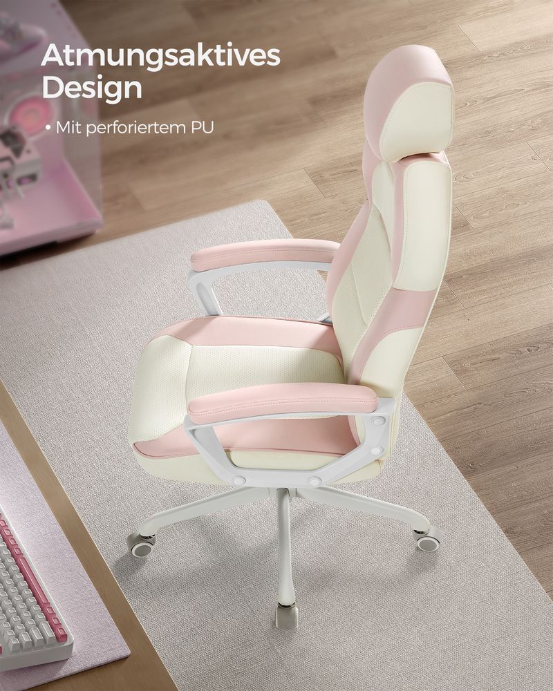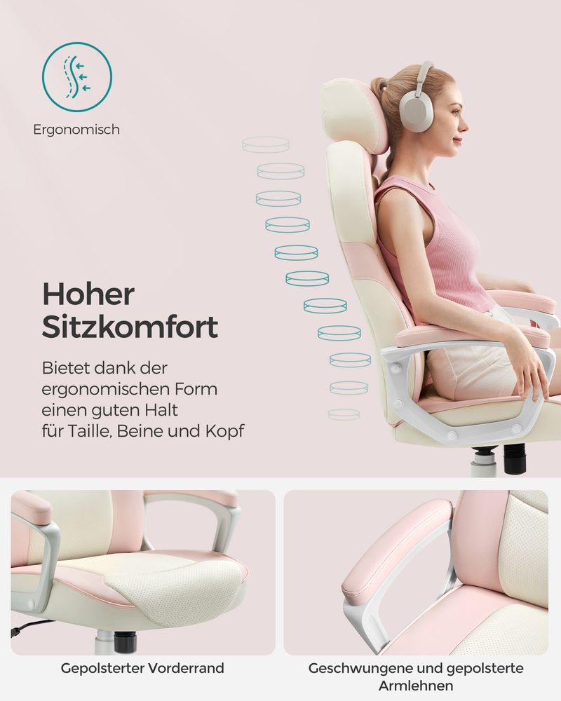 Bureaustoel Kunstleer – Ergonomisch, Draaibaar en in Hoogte Verstelbaar – Met Schommelfunctie en Brede Armleuningen