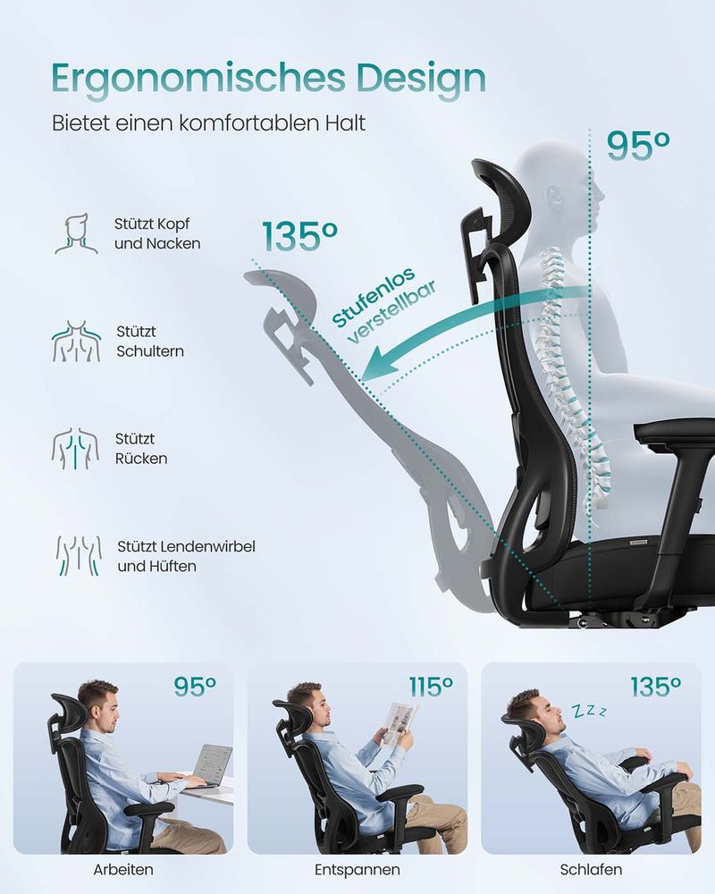 Ergonomische Bureaustoel – Verstelbare Lendensteun – Ademend Netweefsel – Kantelfunctie – Draagvermogen 150 kg