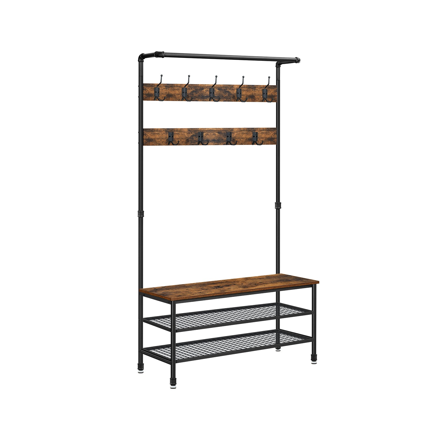 Kapstok met Bank – Industrieel Design – 9 Haken, Kledingroede en Schoenenplanken