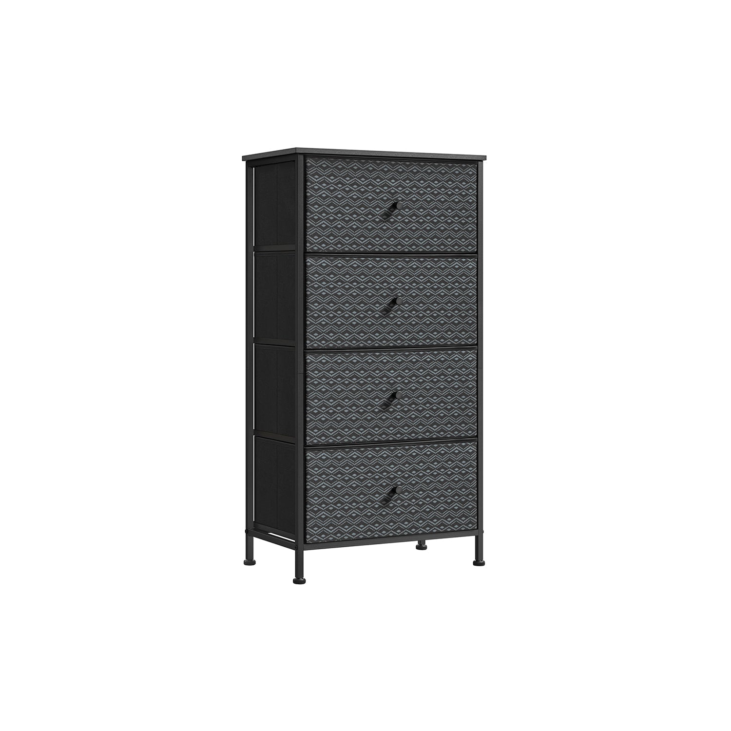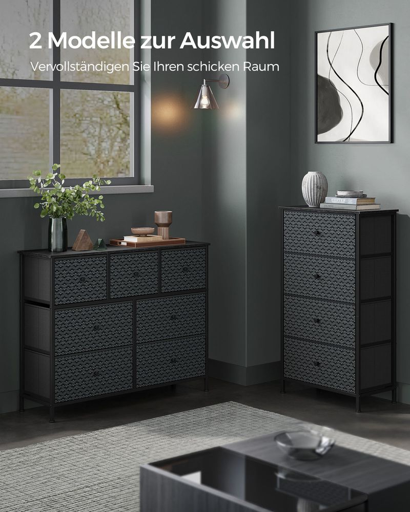 Ladekast Zwart-Wit – Opbergkast met 5 Stoffen Lades – Geometrisch Design – Metalen Frame – 99 cm Hoog – Tot 63,5 kg Draagvermogen