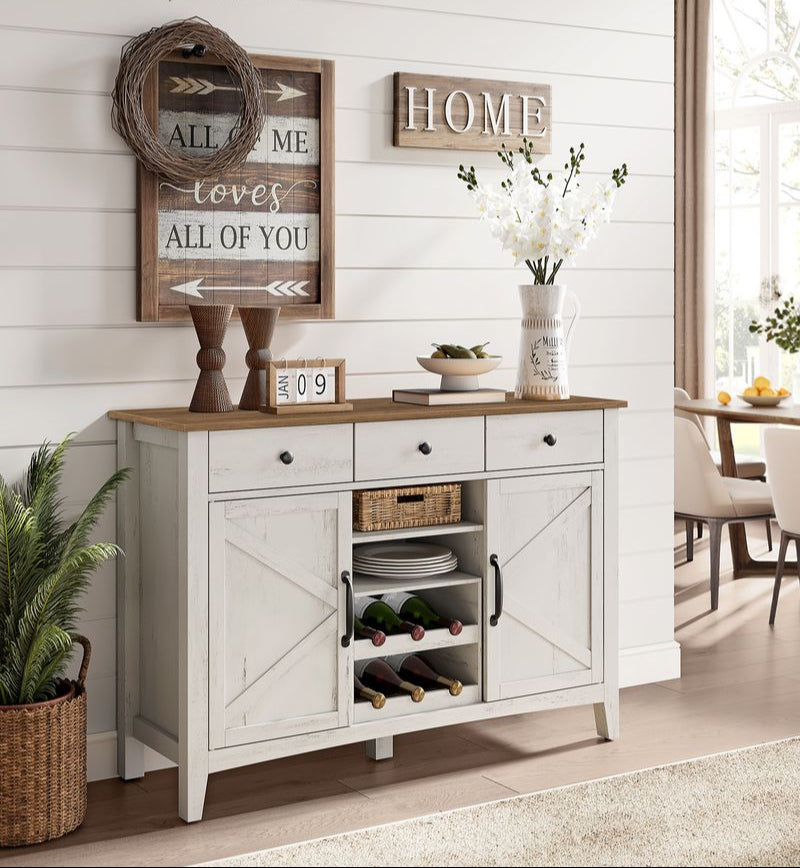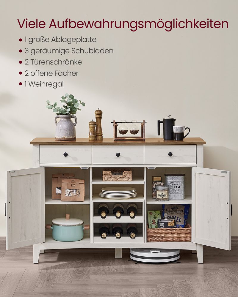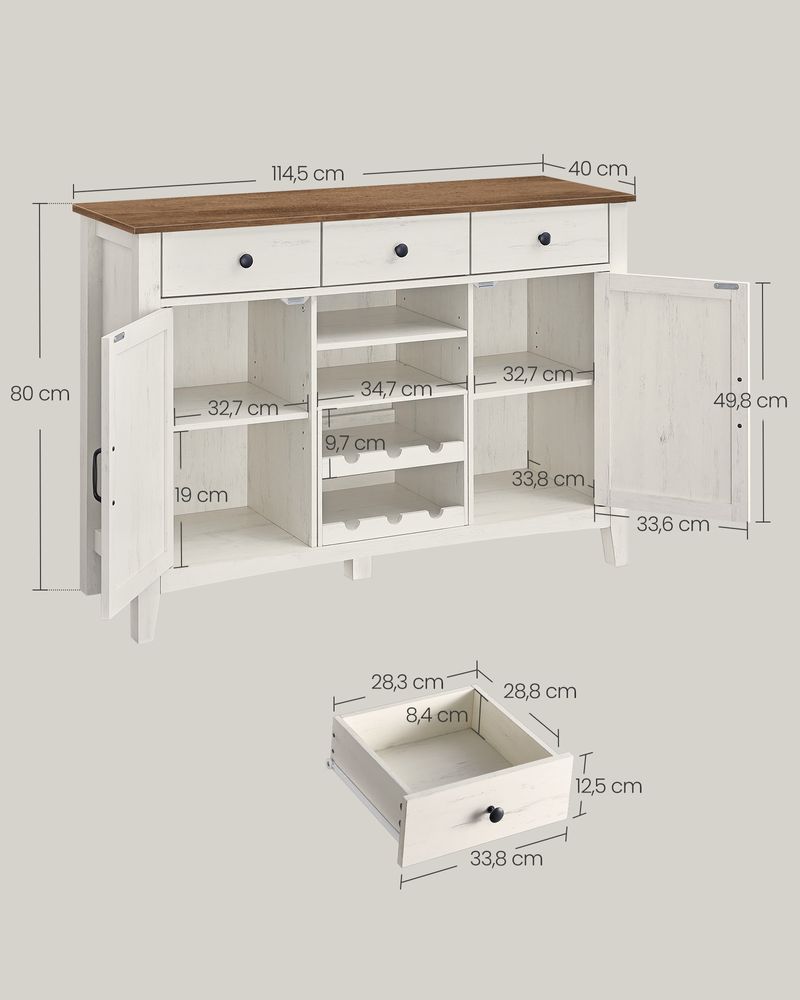 Buffetkast met Schuifdeuren – Keukenkast met Wijnrek – Landelijke Stijl – 114,5 cm Breed
