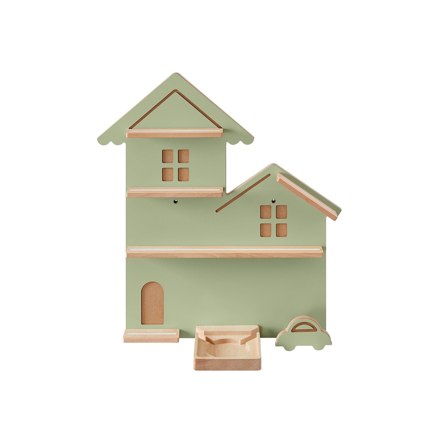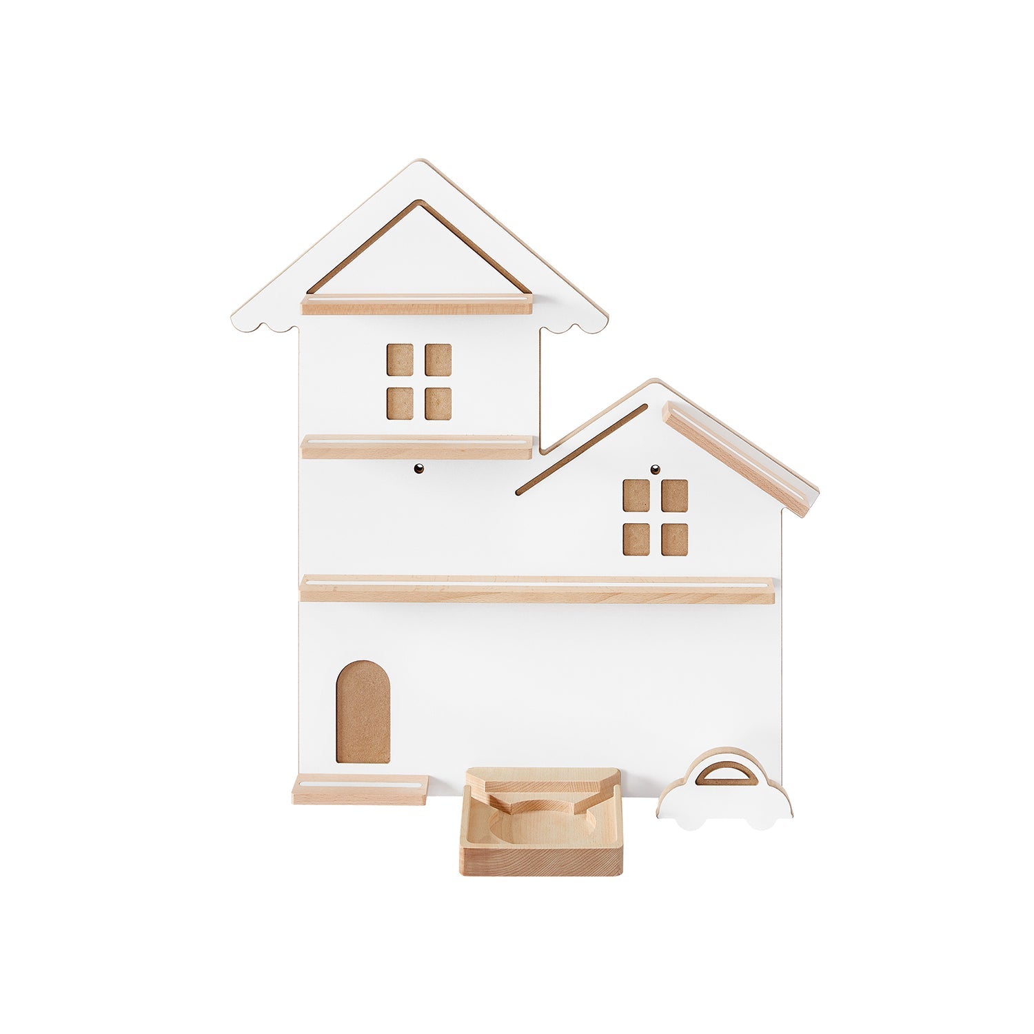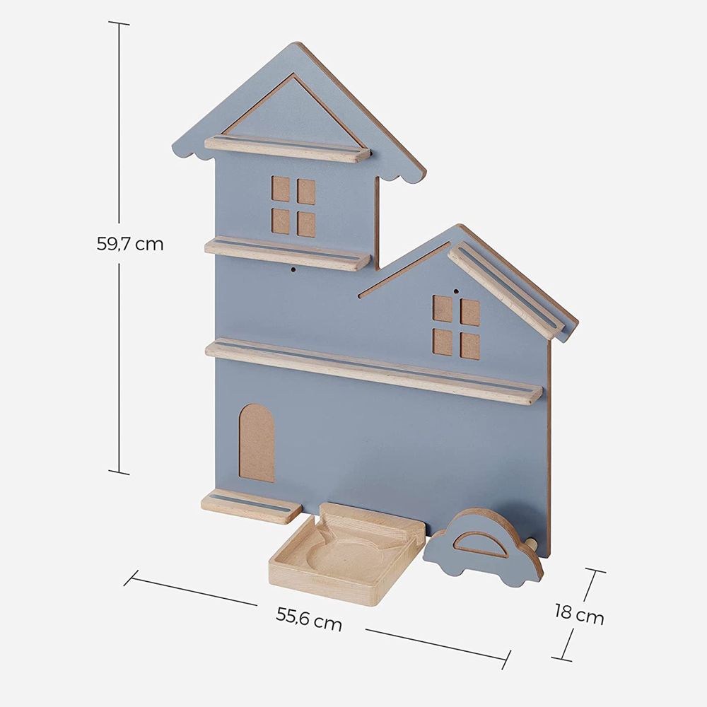 Deze wandplank in elegant grijs met een speels straatbeeldontwerp is een charmante toevoeging aan elke kinderkamer. Perfect afgestemd op de Toniebox (merk van tonies GmbH – vermeld ter verduidelijking van compatibiliteit), biedt het een praktische én decoratieve opbergoplossing.
