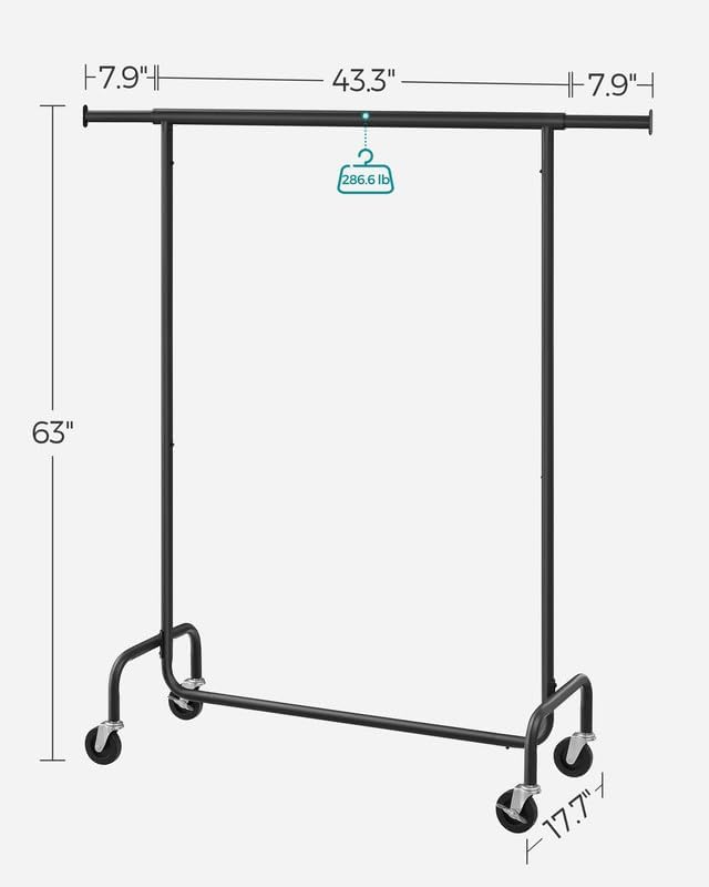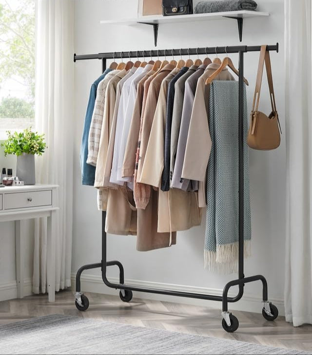 Verrijdbaar Kledingrek met Uittrekbare Stang – Extra Draagkracht – Mat Zwart – Tot 130 kg