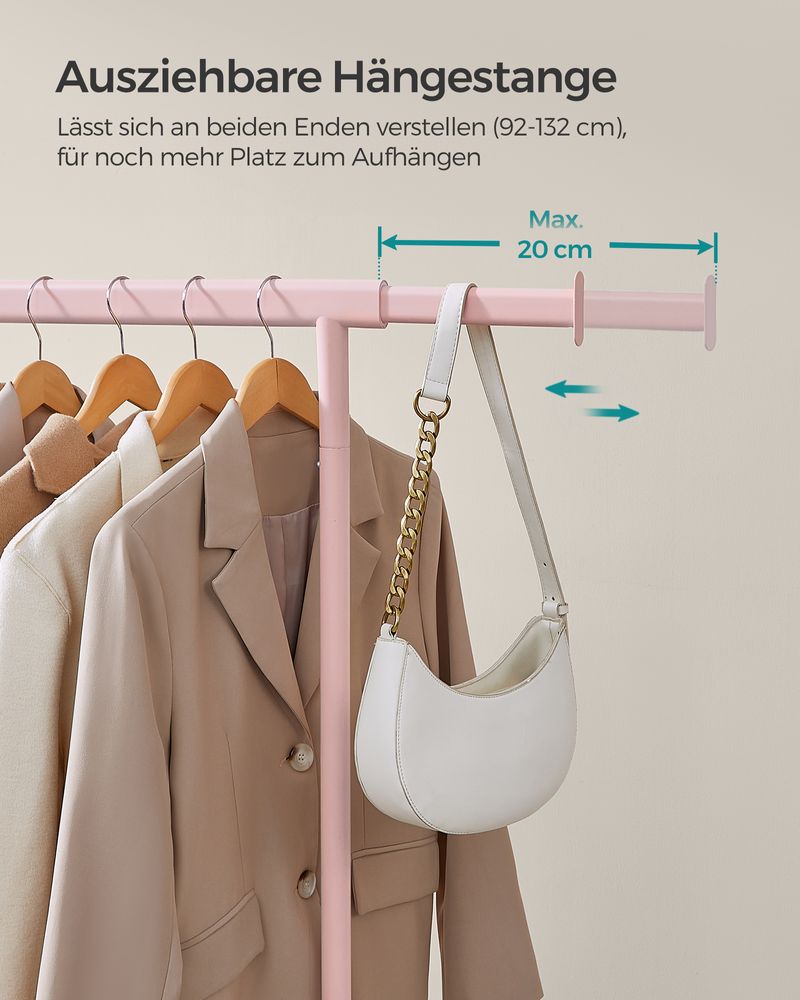 Uitschuifbaar Kledingrek – Verstelbaar in Hoogte en Lengte – Met Wielen en Dubbele Stang