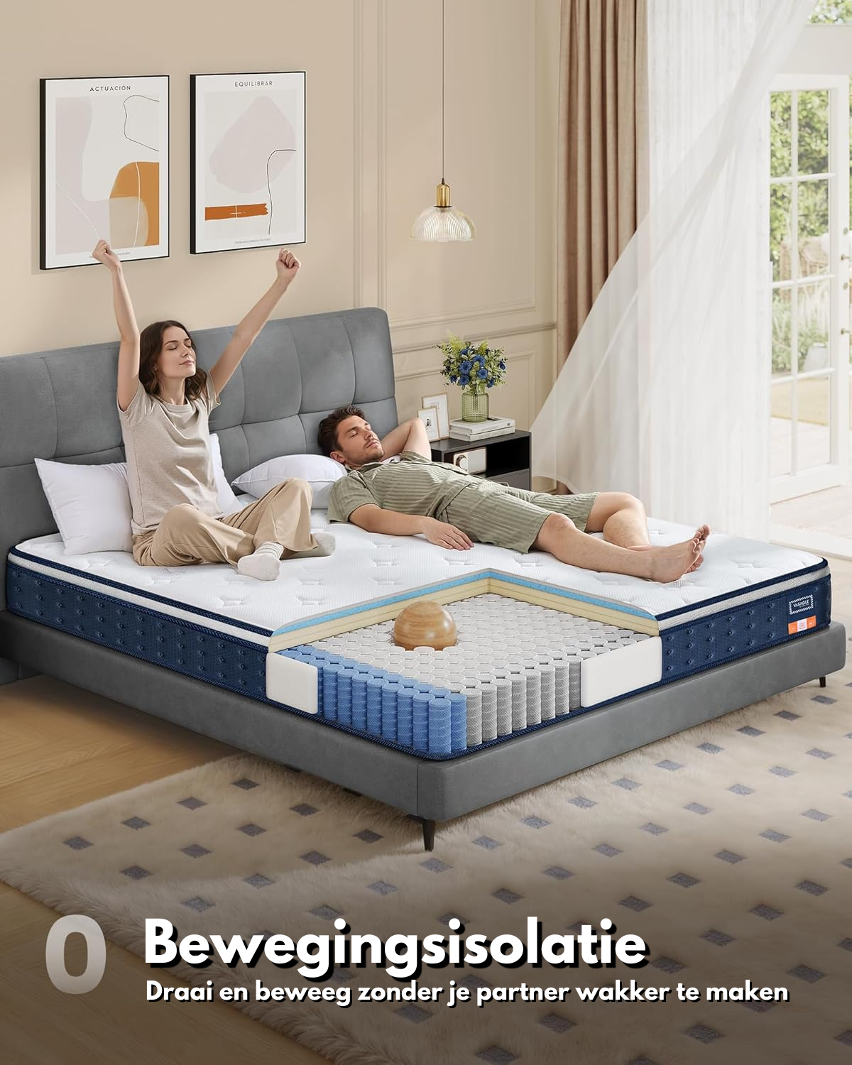 Deze hybride pocketveringmatras combineert het beste van twee werelden: de stabiliteit van individuele pocketveren en het comfort van gel-infused memoryschuim. De onafhankelijk werkende veren minimaliseren bewegingsoverdracht, zodat je partner ongestoord kan draaien zonder jouw slaap te verstoren.