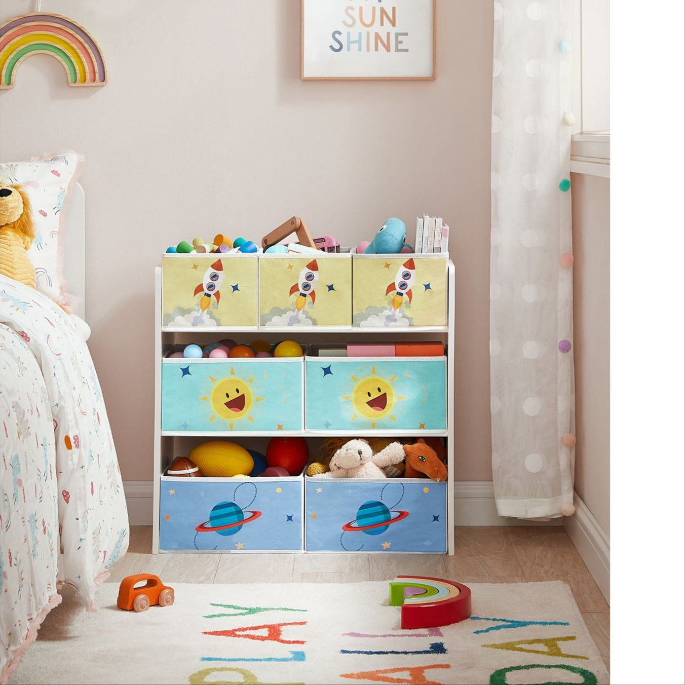 Kinderboekenkast met Speelgoedkist – Organizer met Ruimtethema – Met Wielen en Anti-Kantelbeveiliging – 62,5 cm Breed