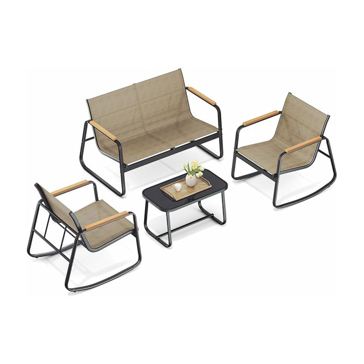Tuinset 4-delig - Balkonset - 2 Stoelen en Bankje met Bijzettafel