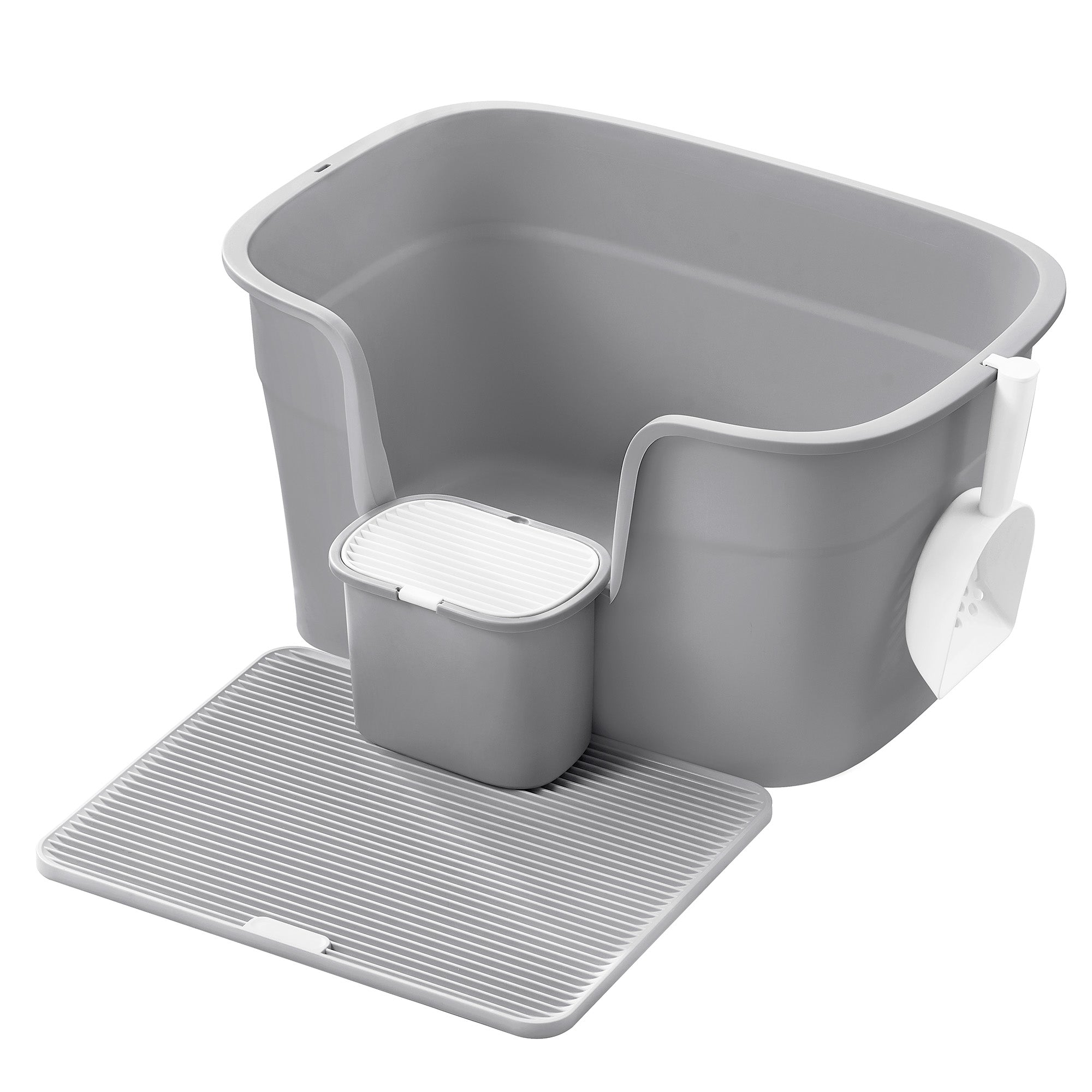 Extra Grote Kattenbak met Hoge Wanden – Inclusief Litter Catcher, Opbergbox en Schep – Voor Grote Katten tot 15 kg – Duifgrijs
