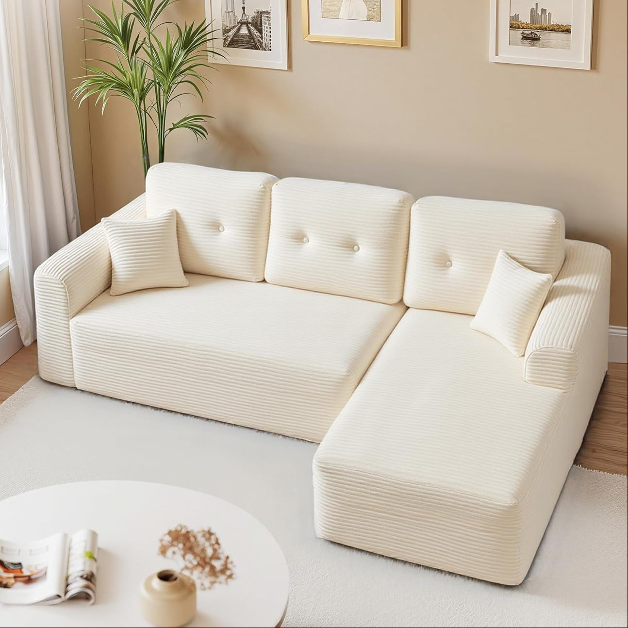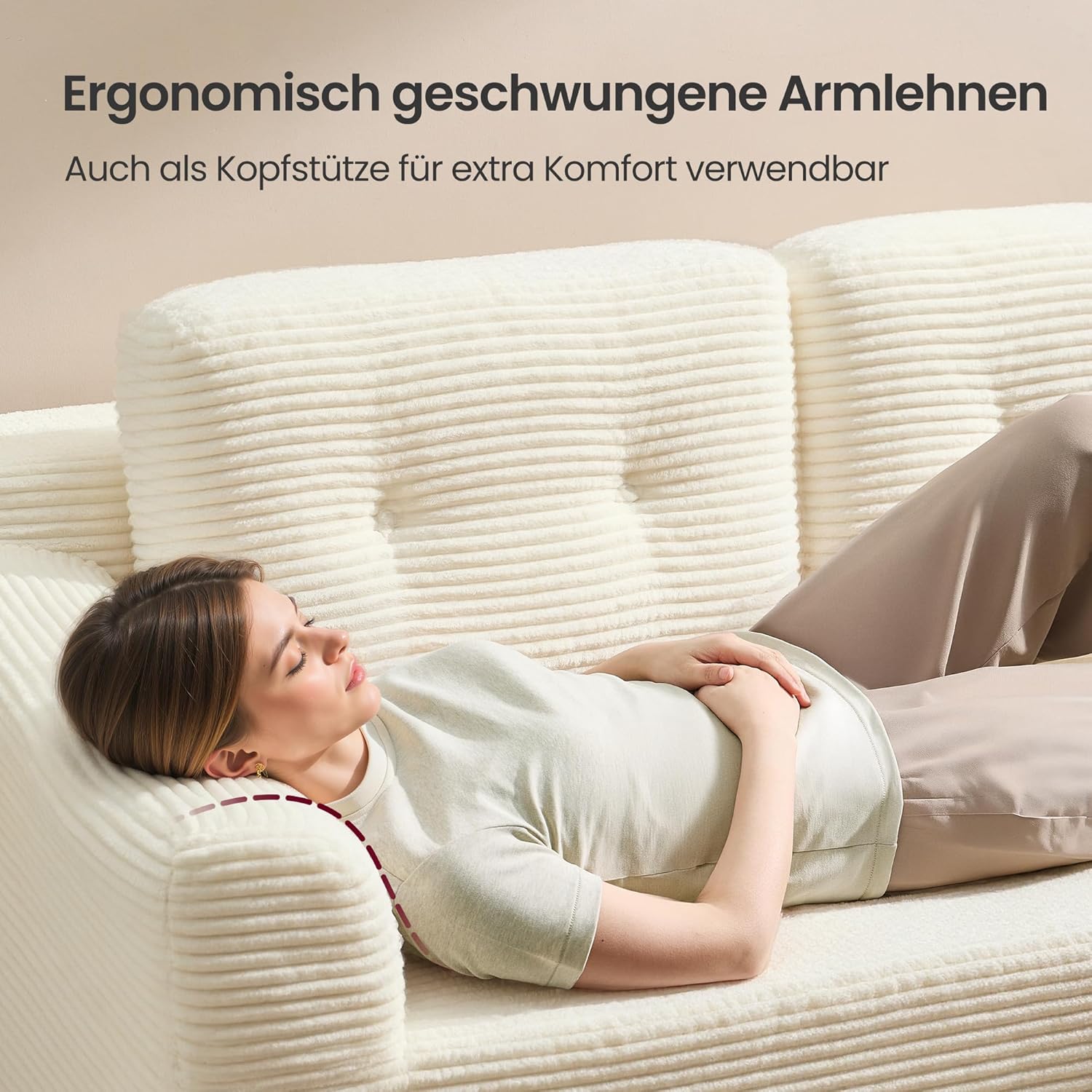 De corduroy bekleding voelt heerlijk zacht aan, terwijl het hoogwaardige schuim en de binnenveren zorgen voor blijvende ondersteuning. Zo geniet je van een comfortabele zit zonder in te zakken.