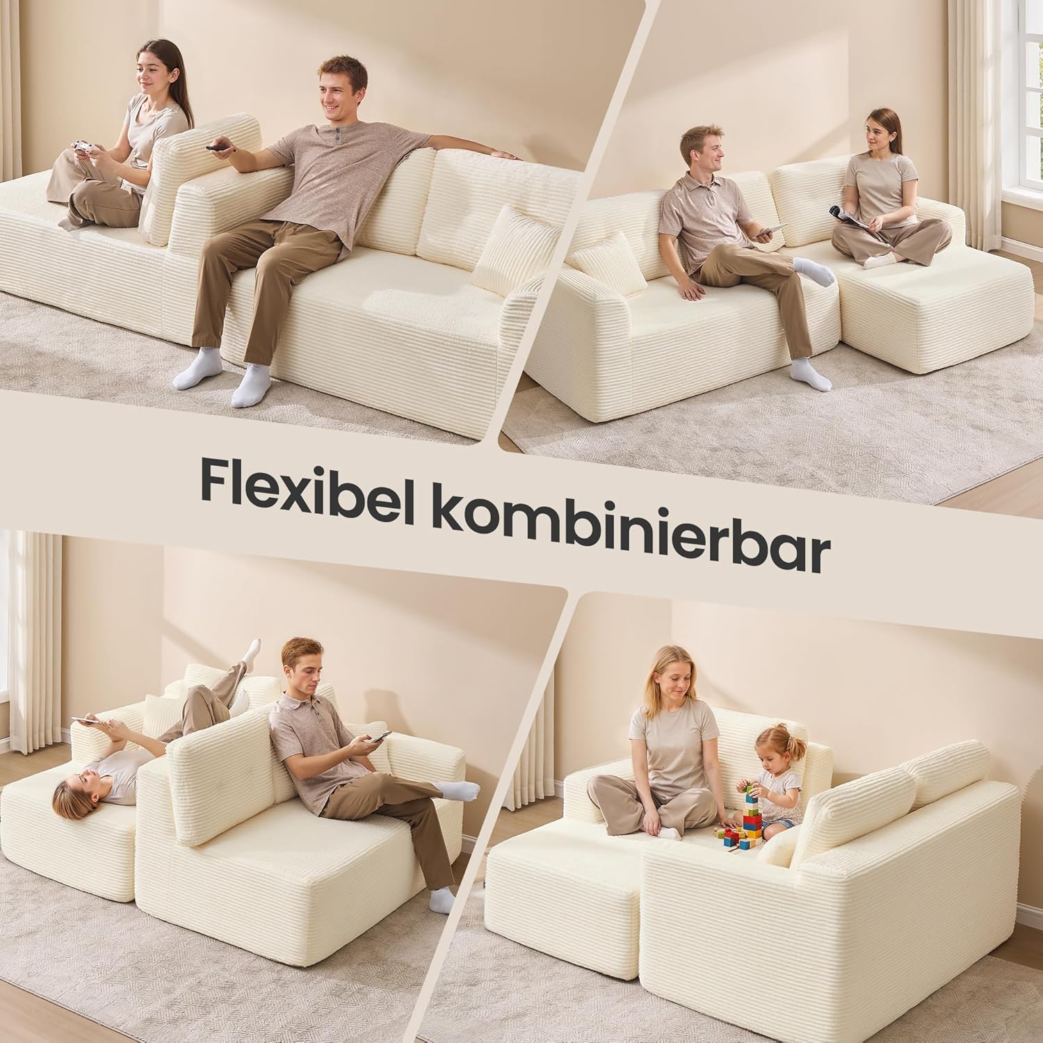 Gebruik de bank als rechte bank, hoekbank of slaapbank – de modulaire elementen maken elke opstelling mogelijk. Perfect voor filmavonden, logees of gezellige momenten met familie.