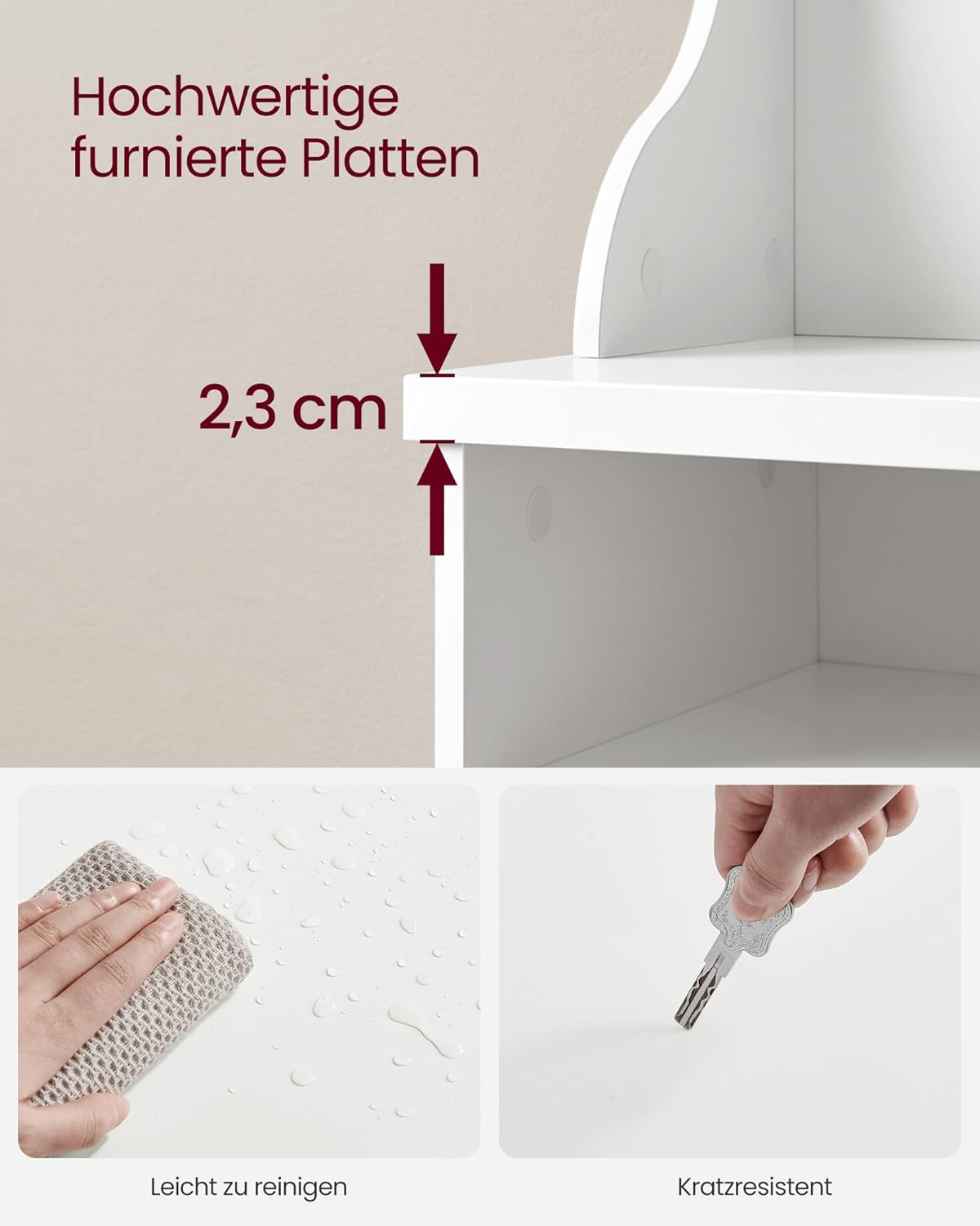 Gemaakt van hoogwaardige spaanplaat en MDF is deze kapstok niet alleen elegant, maar ook robuust en stabiel. Hij is ontworpen om jarenlang mee te gaan en dagelijks gebruik moeiteloos te weerstaan.