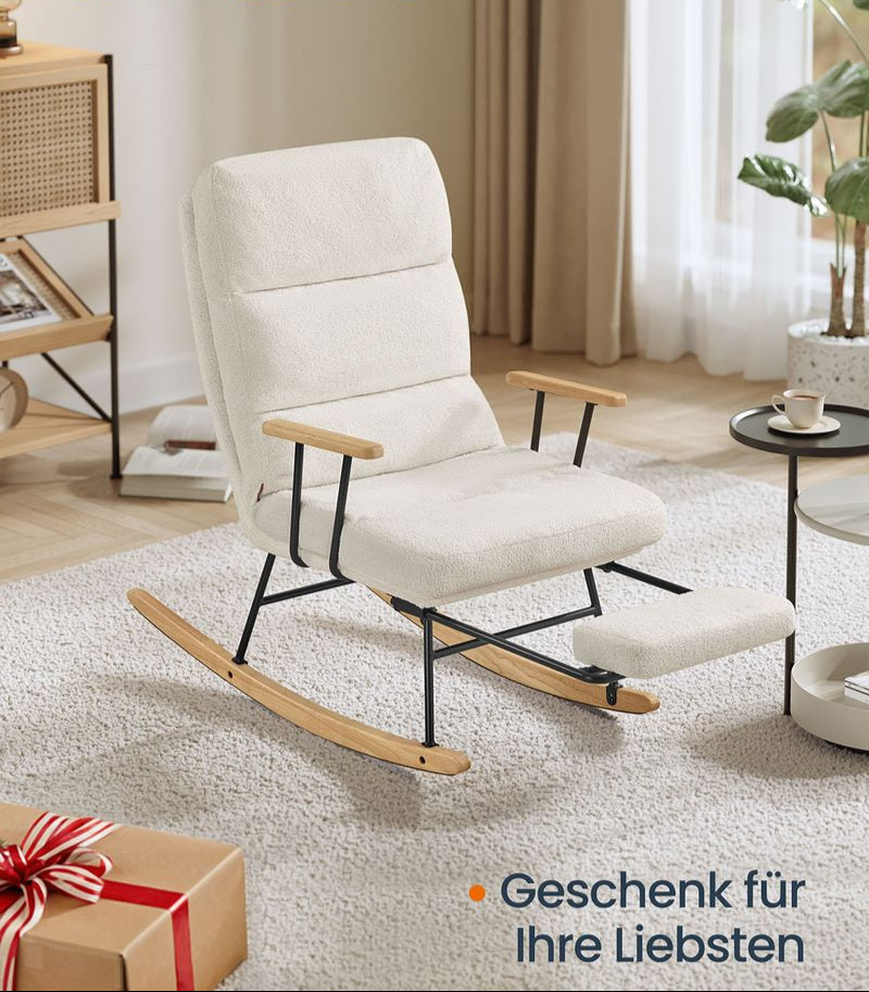 Schommelstoel met Verstelbare Rugleuning en Voetsteun – Crème Wit – 97 x 67 x 100 cm