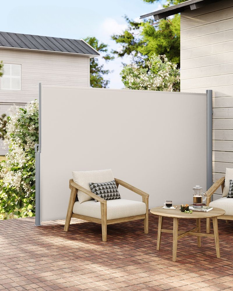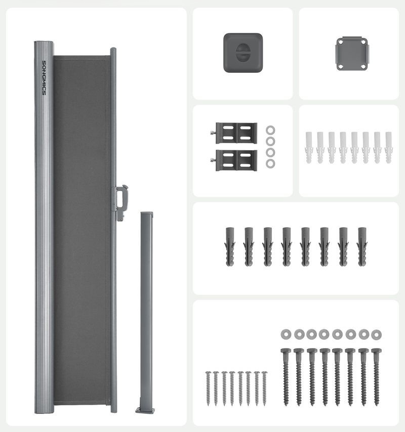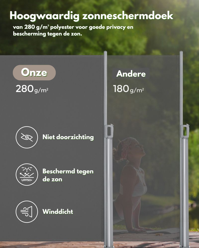 Als u dit tuinscherm koopt is dit wat u geleverd krijgt (inclusief de vrijstaande paal waar het doek aan bevestigd wordt)