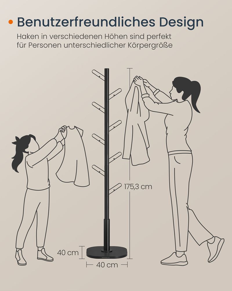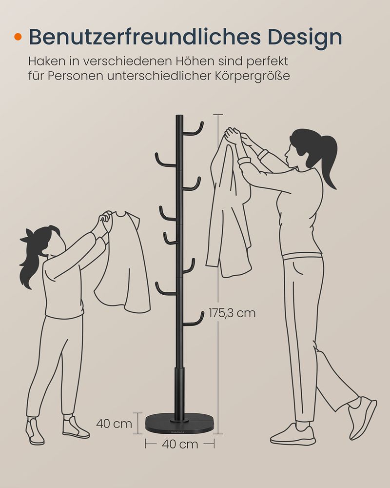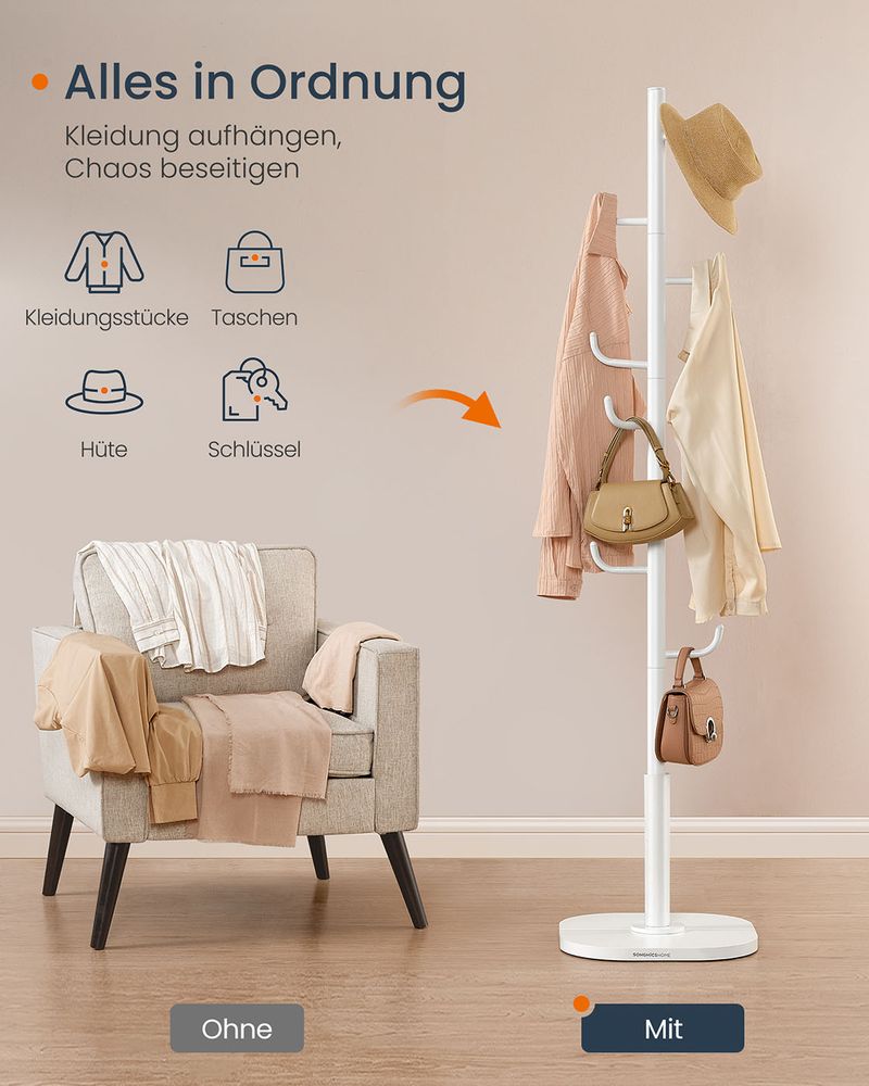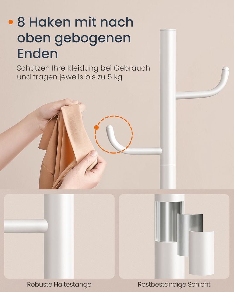 Dankzij meerdere haken kunt u tot wel 21 kledingstukken tegelijk ophangen. Ideaal voor jassen, sjaals, hoeden, tassen of handdoeken – zo blijft uw entree of slaapkamer netjes georganiseerd.