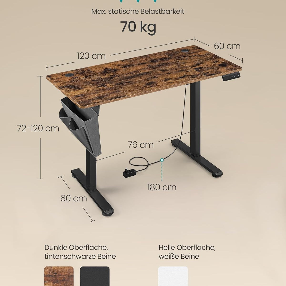 Good materials, stable, enough space for displays, keyboard, mouse, laptops. Nice touch with the LED strip. Easy to assemble, clear instructions. Perhaps it would be useful to have one or two additional plugs (it comes with two and two USB ports). Quite satisfied wuth the purchase!